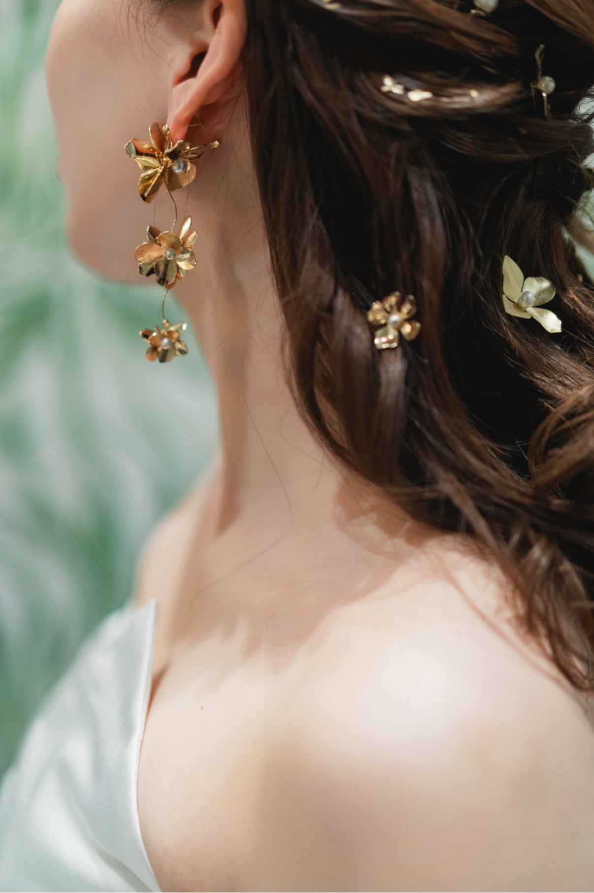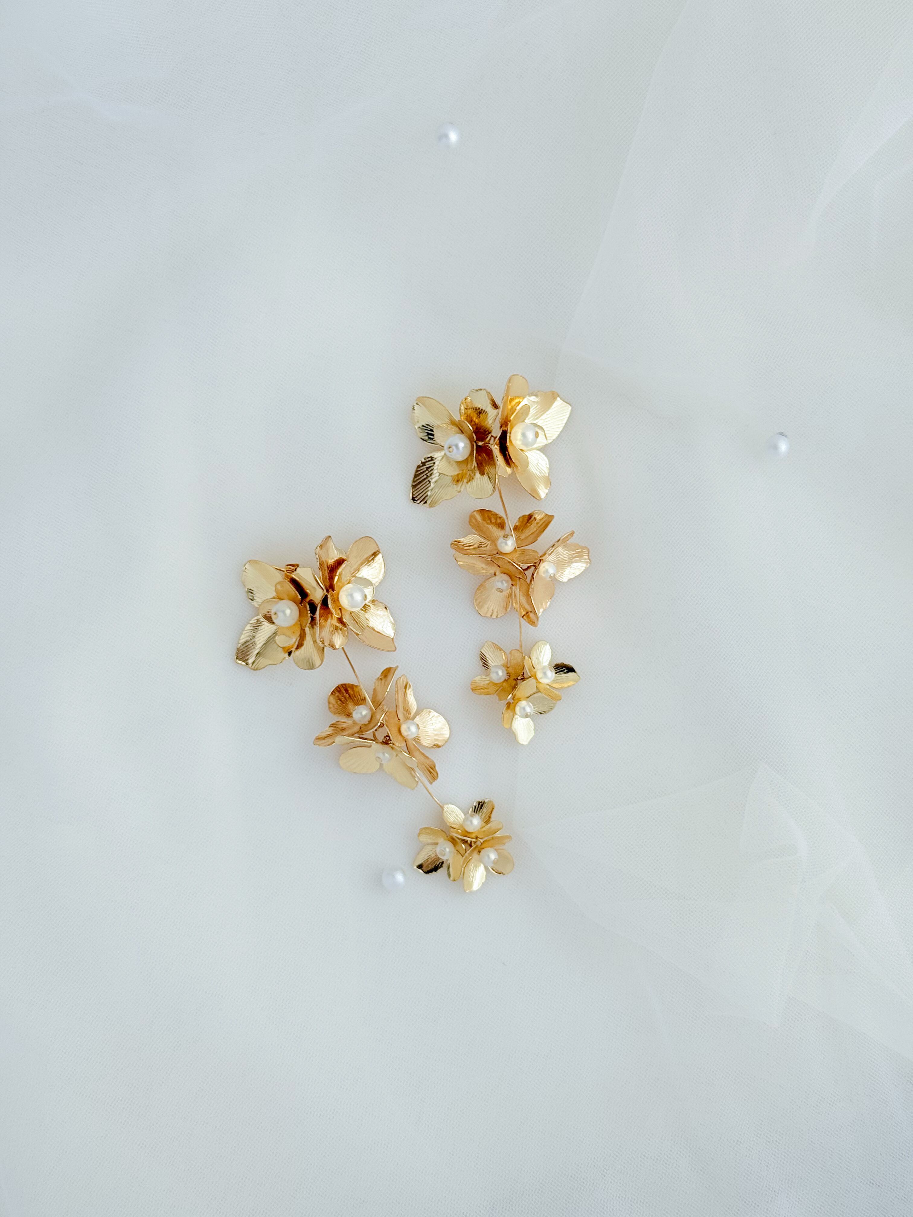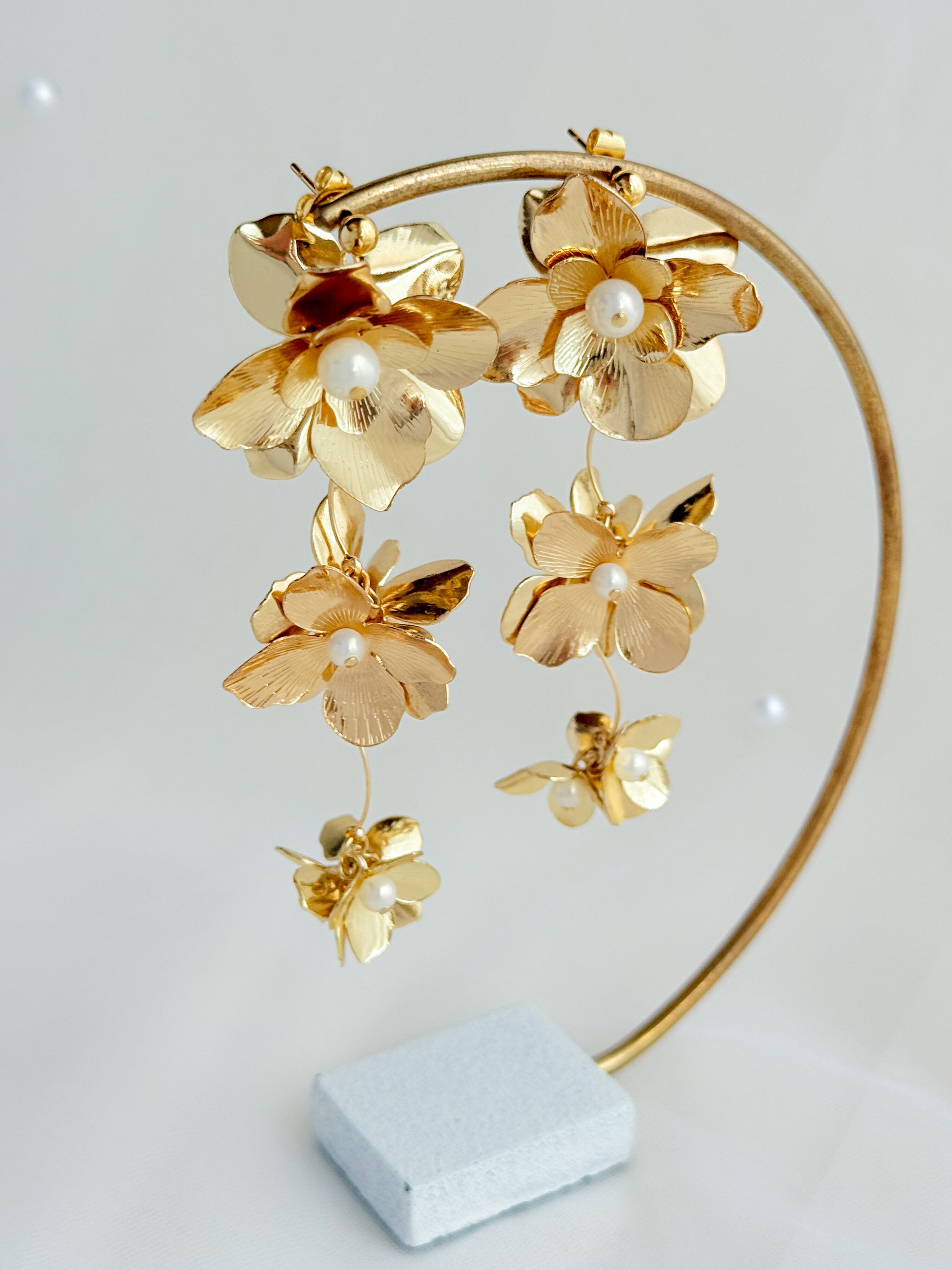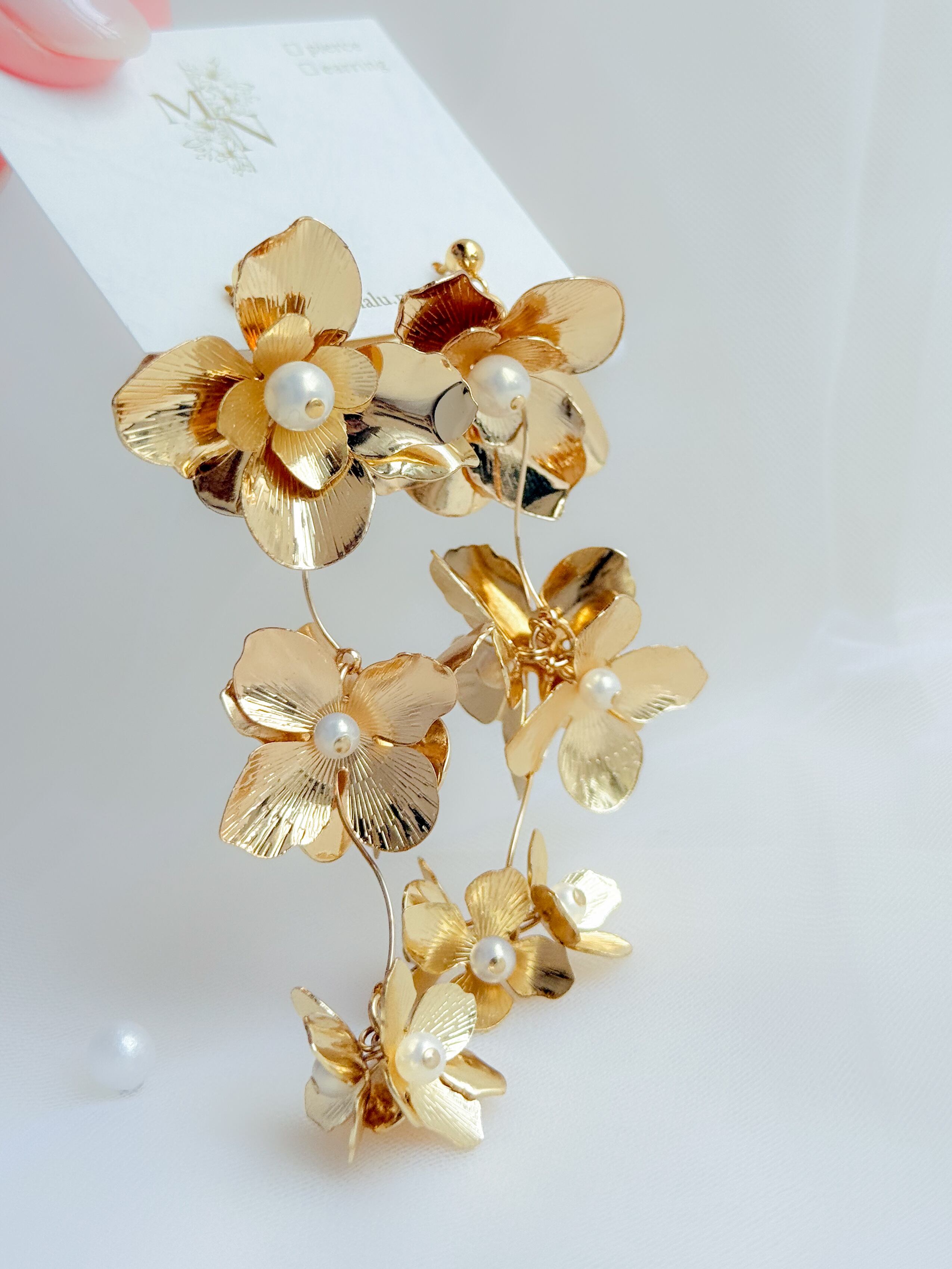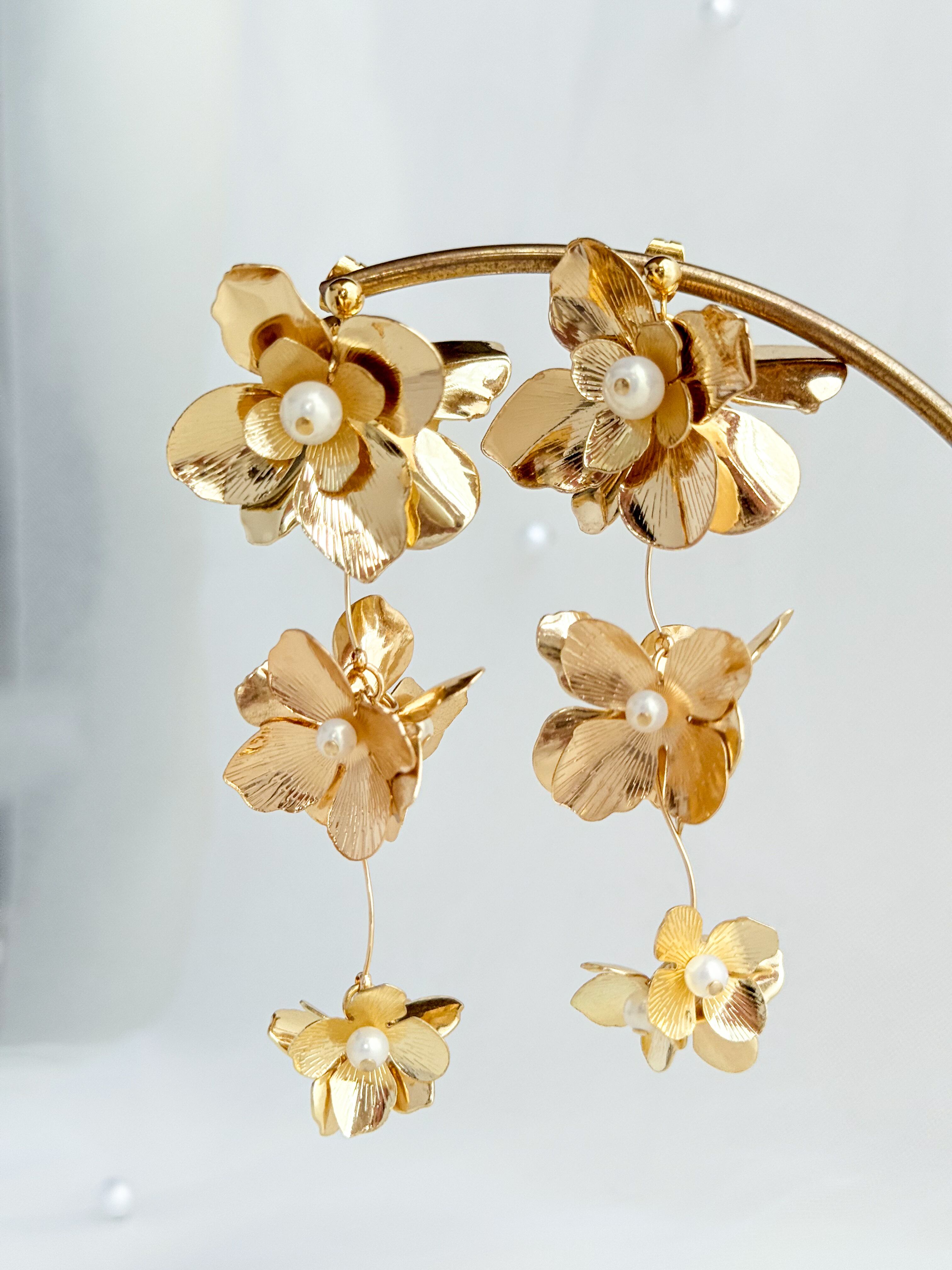 ゴールドフラワー: 上品なゴールドが耳元で優雅に揺れ、存在感抜群の華やかさを演出します!