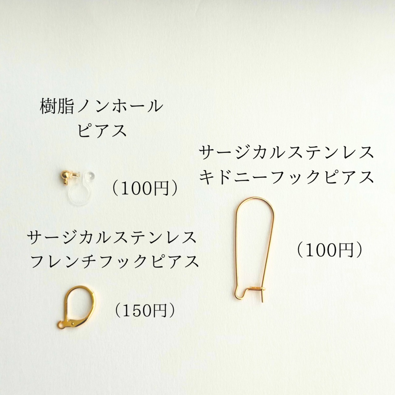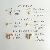 アレルギー対応金具やイヤリングへのカスタマイズも承ります。