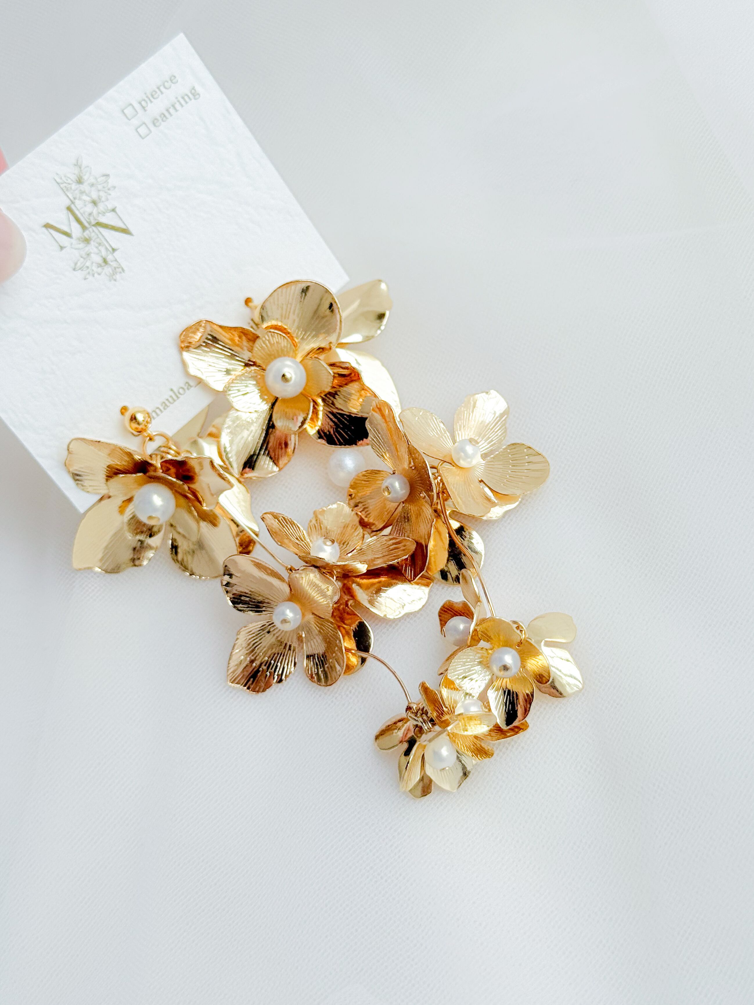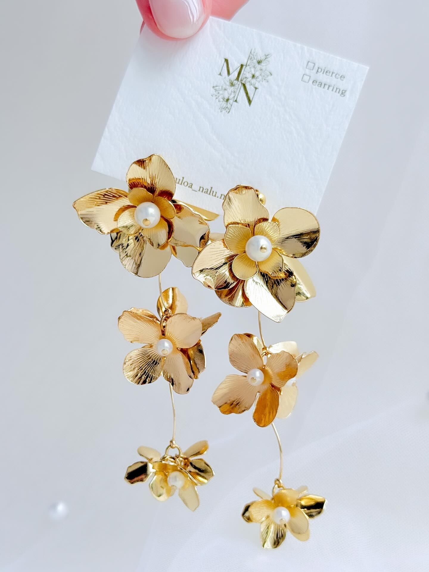 たっぷりのゴールドフラワーとパールが融合した、優雅に揺れるおしゃれなピアス/イヤリングが登場しました!✨