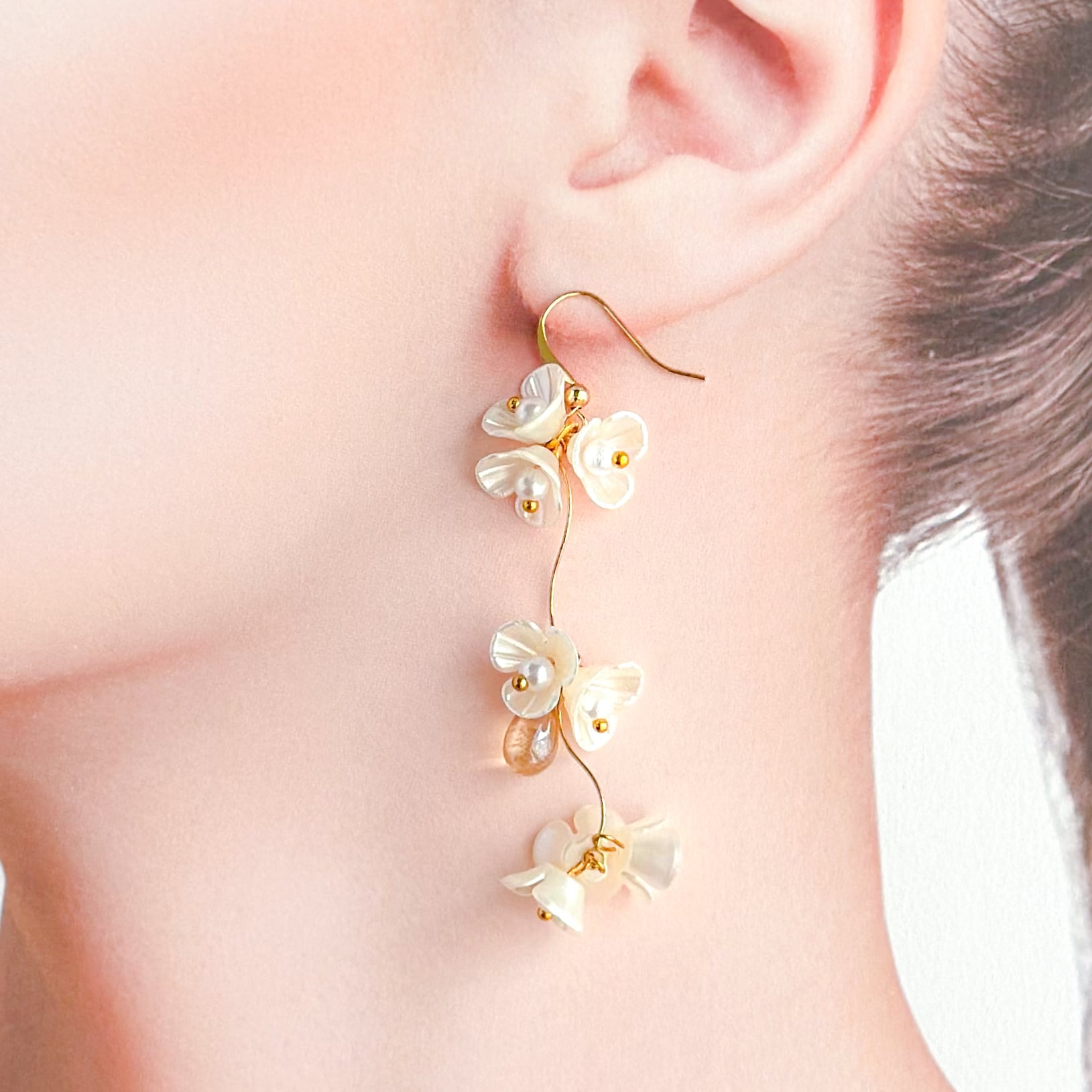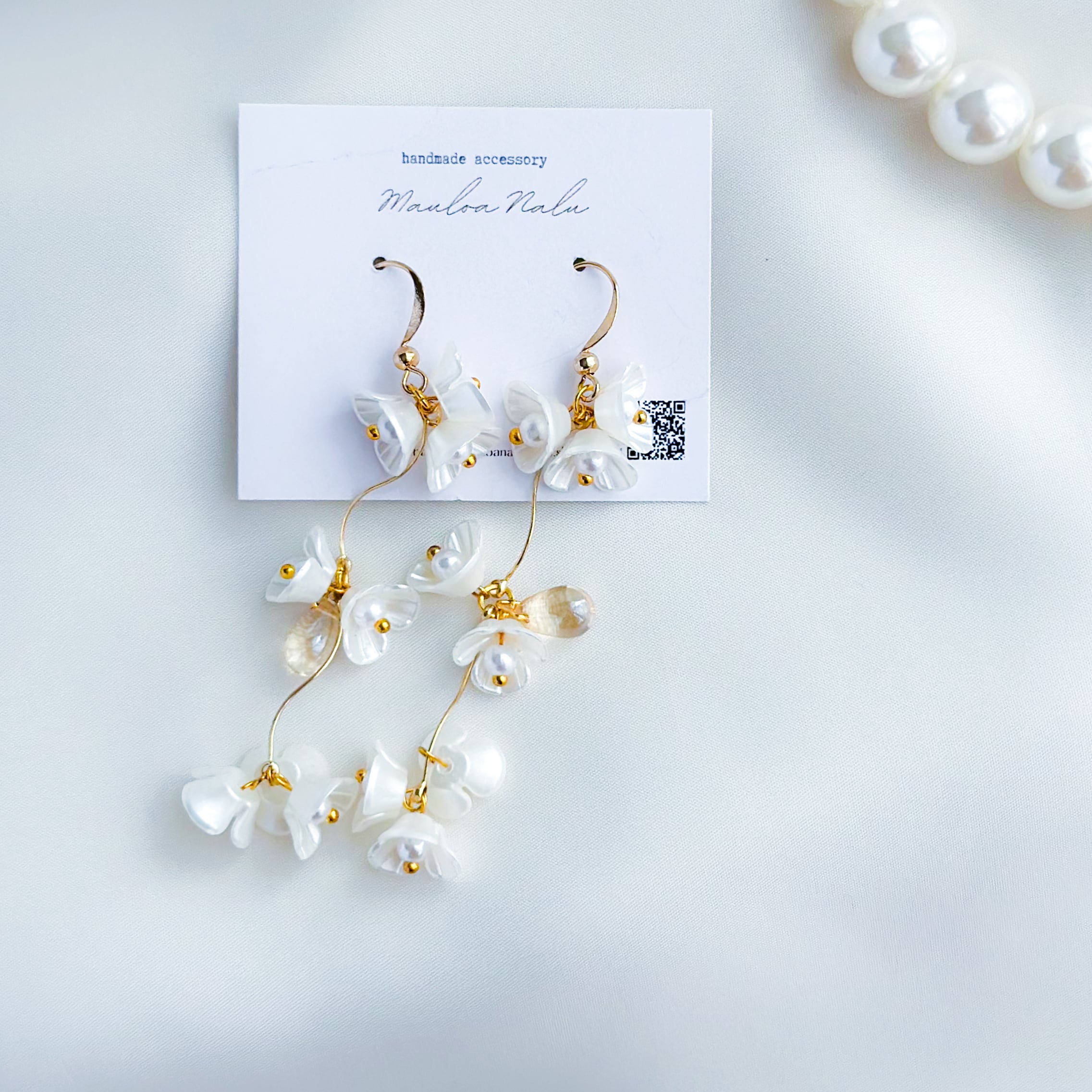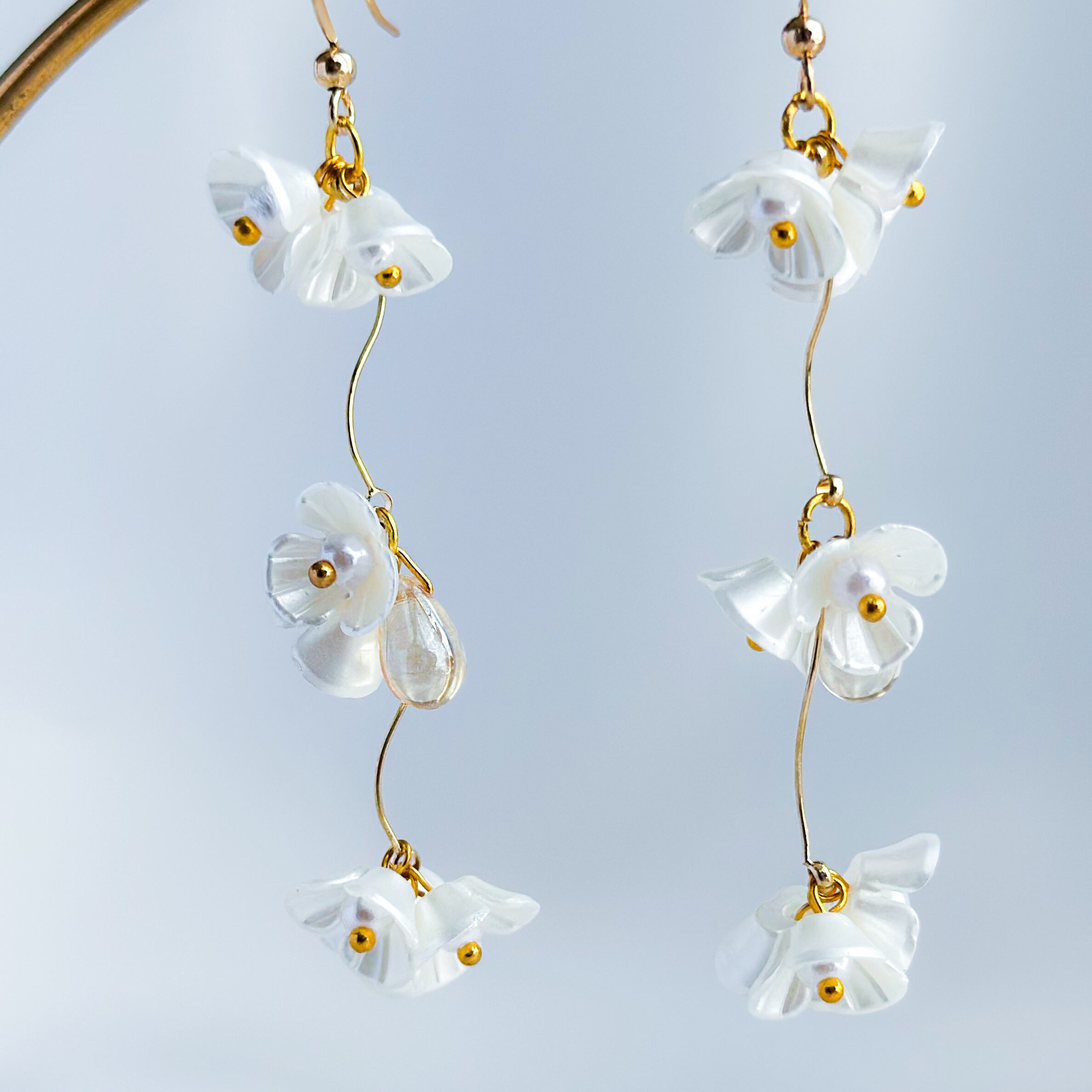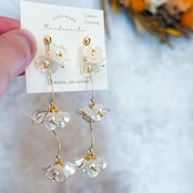 ☆ 小ぶりなホワイフラワーが連なり優雅に揺れるピアス/イヤリング