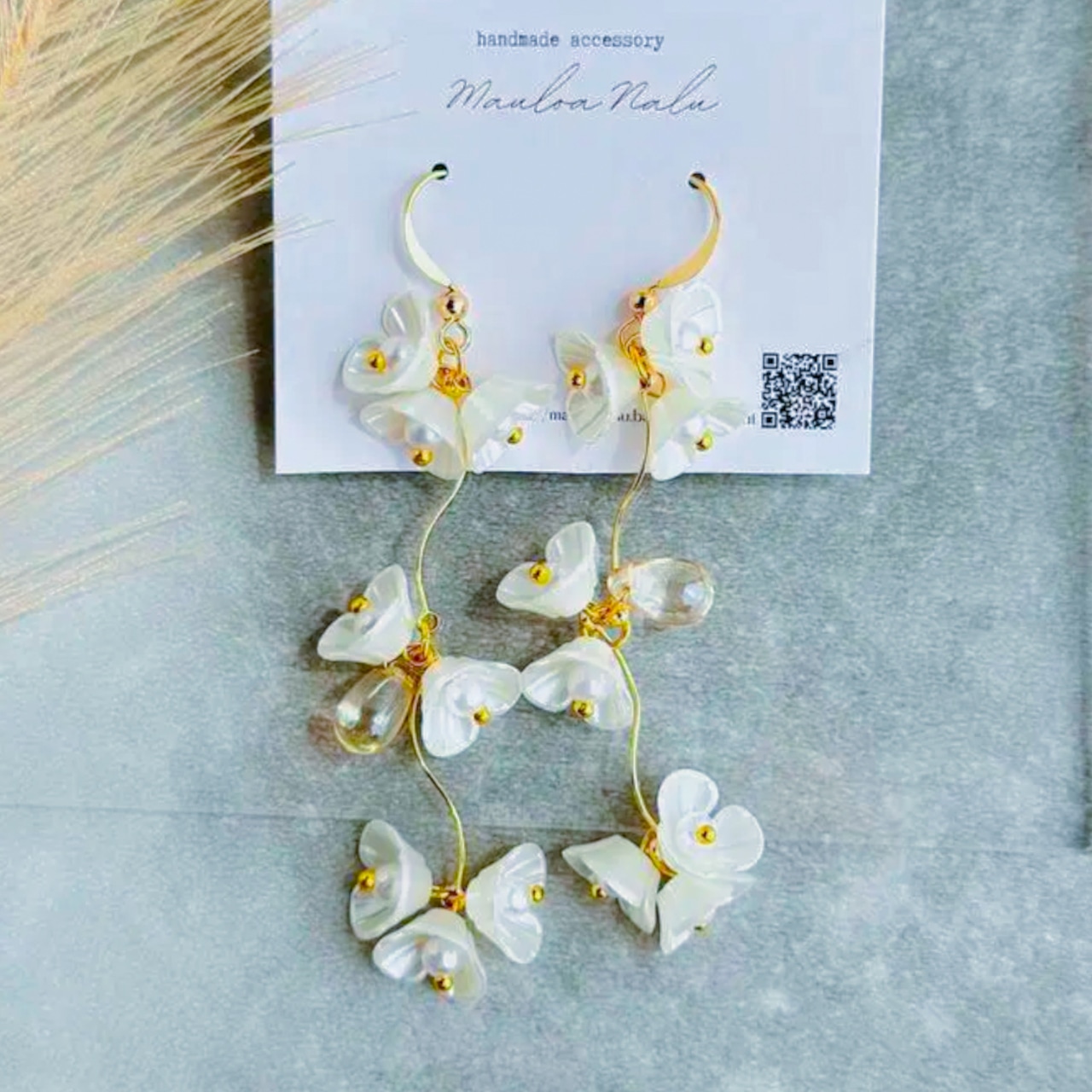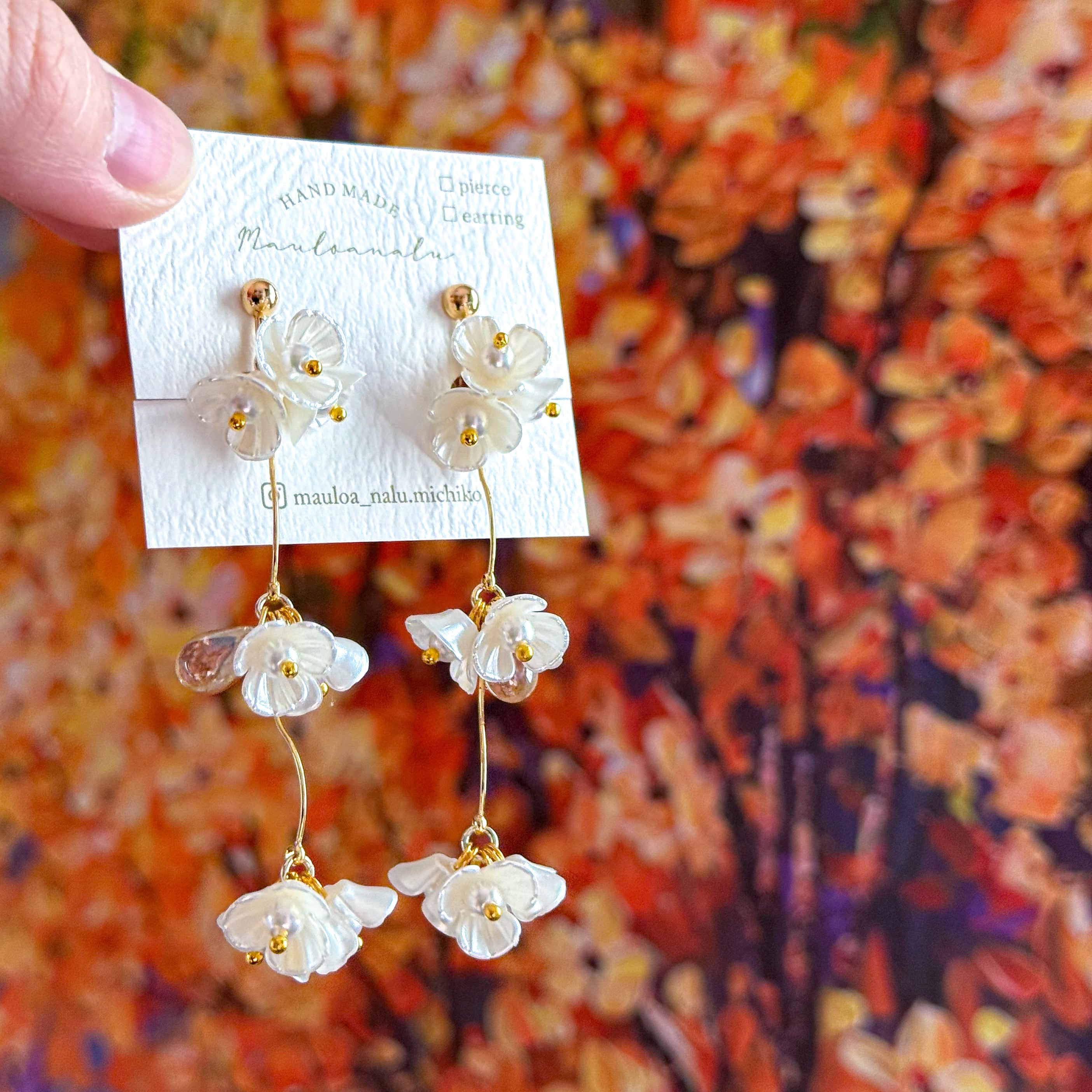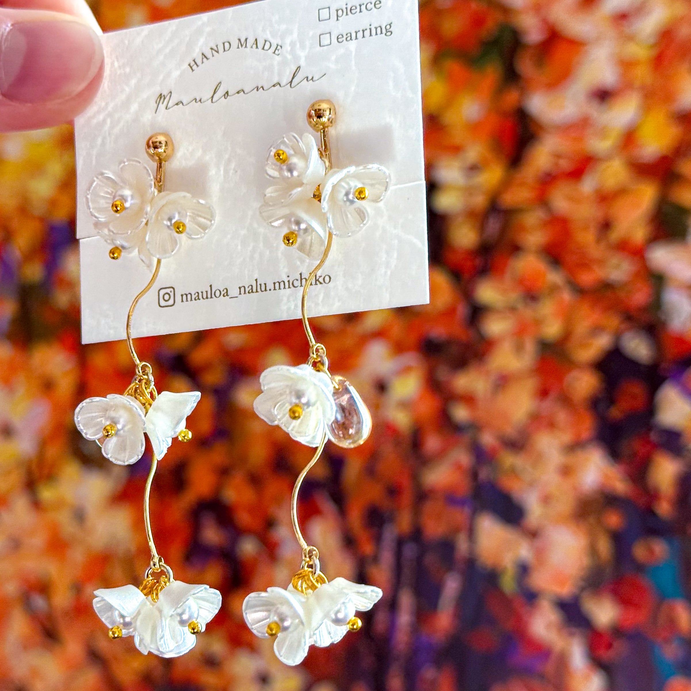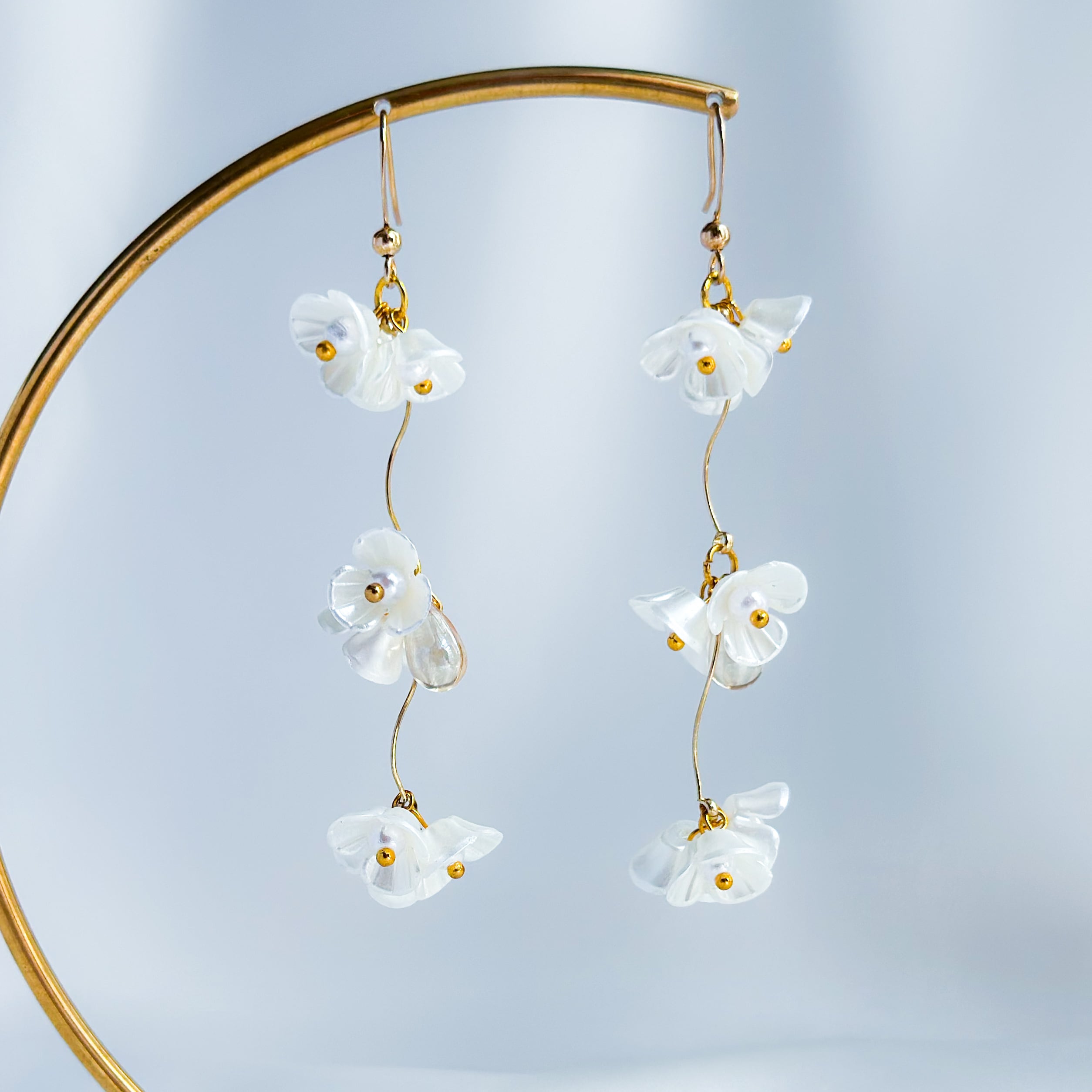 ☆ 小ぶりなホワイフラワーが連なり優雅に揺れるピアス/イヤリング