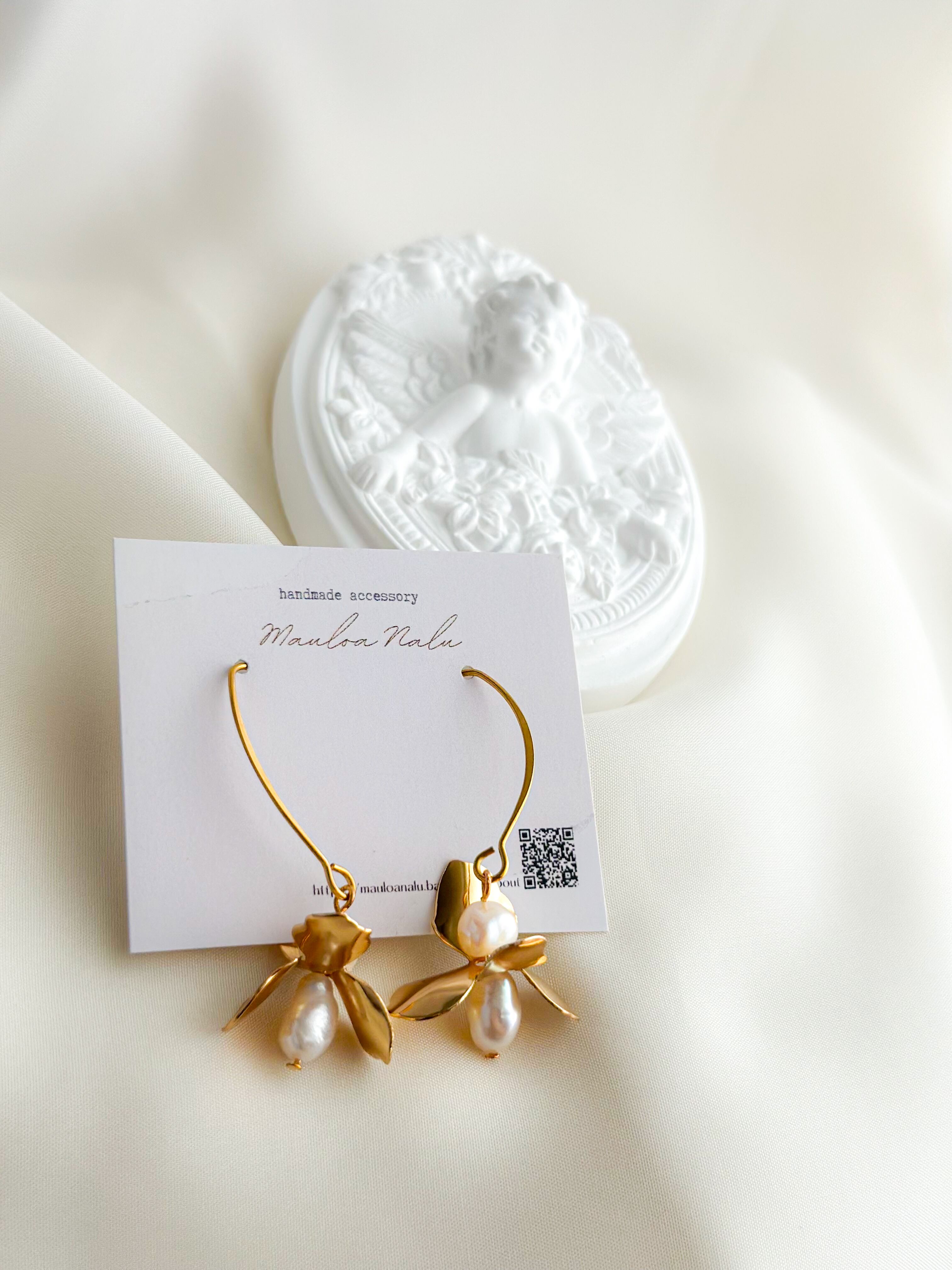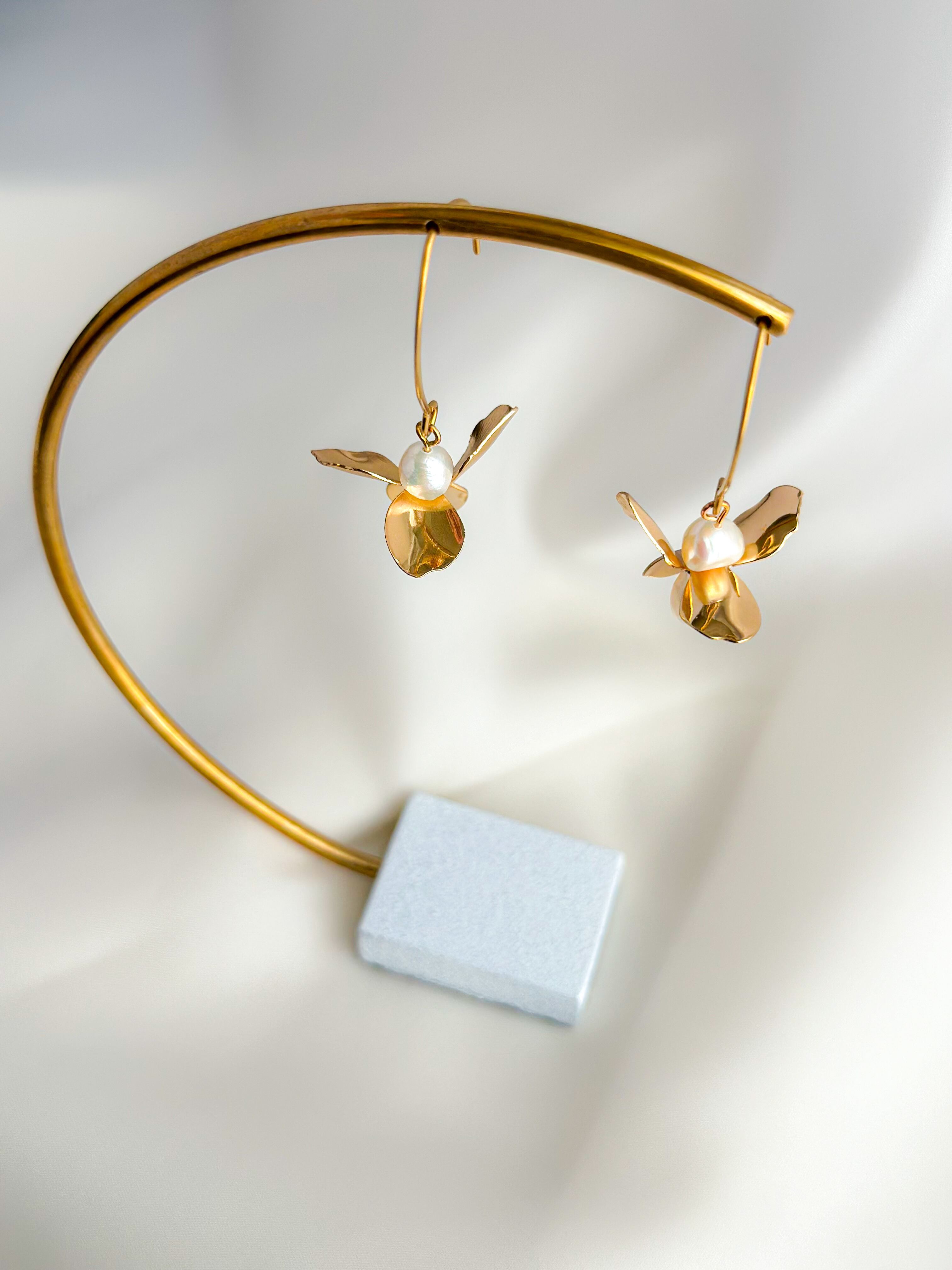 ☆ ゴールドフラワーと淡水パールが揺れる サージカルステンレスワイヤーピアス