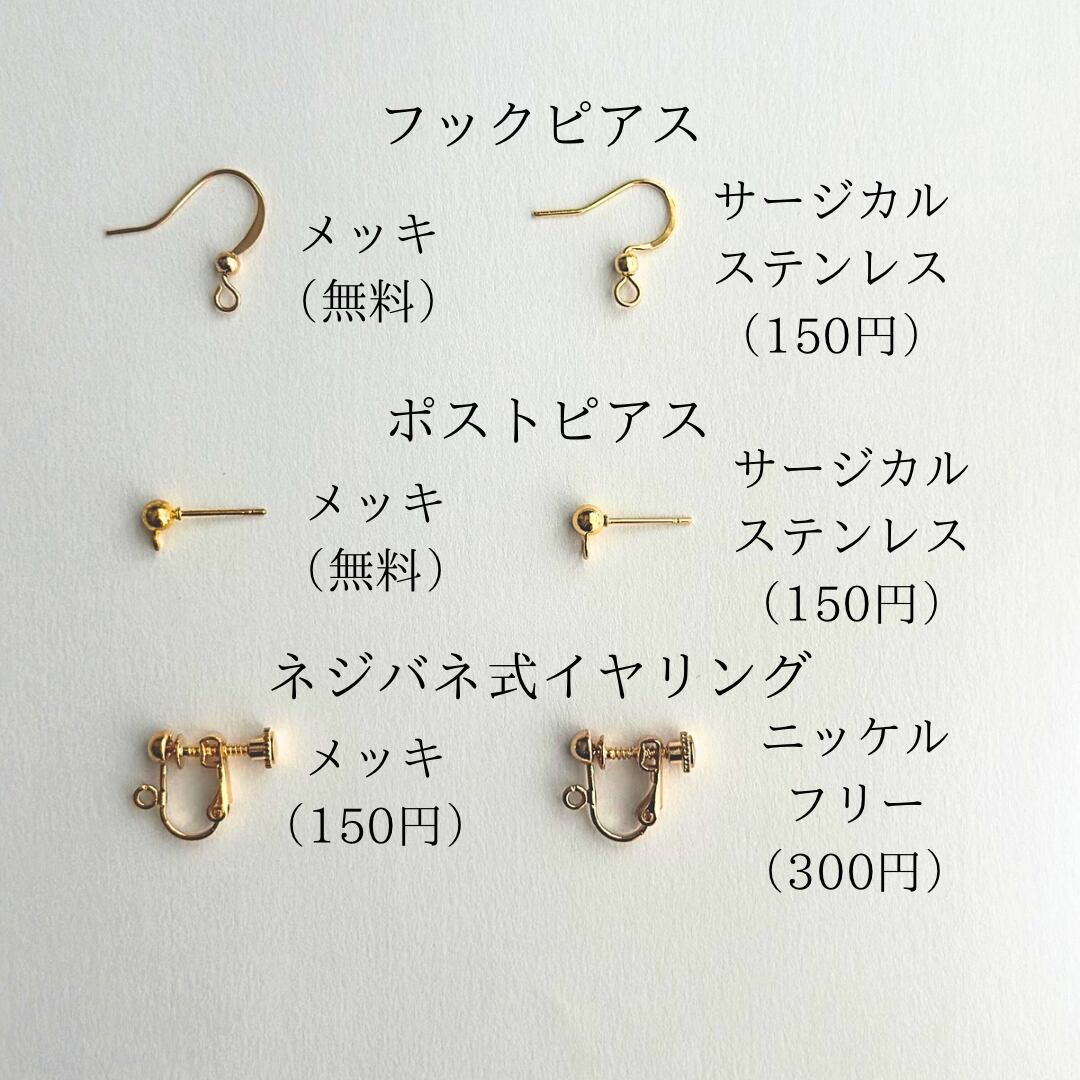 変更なしの場合メッキ素材(アレルギー非対応)の画像ピアスになります。
