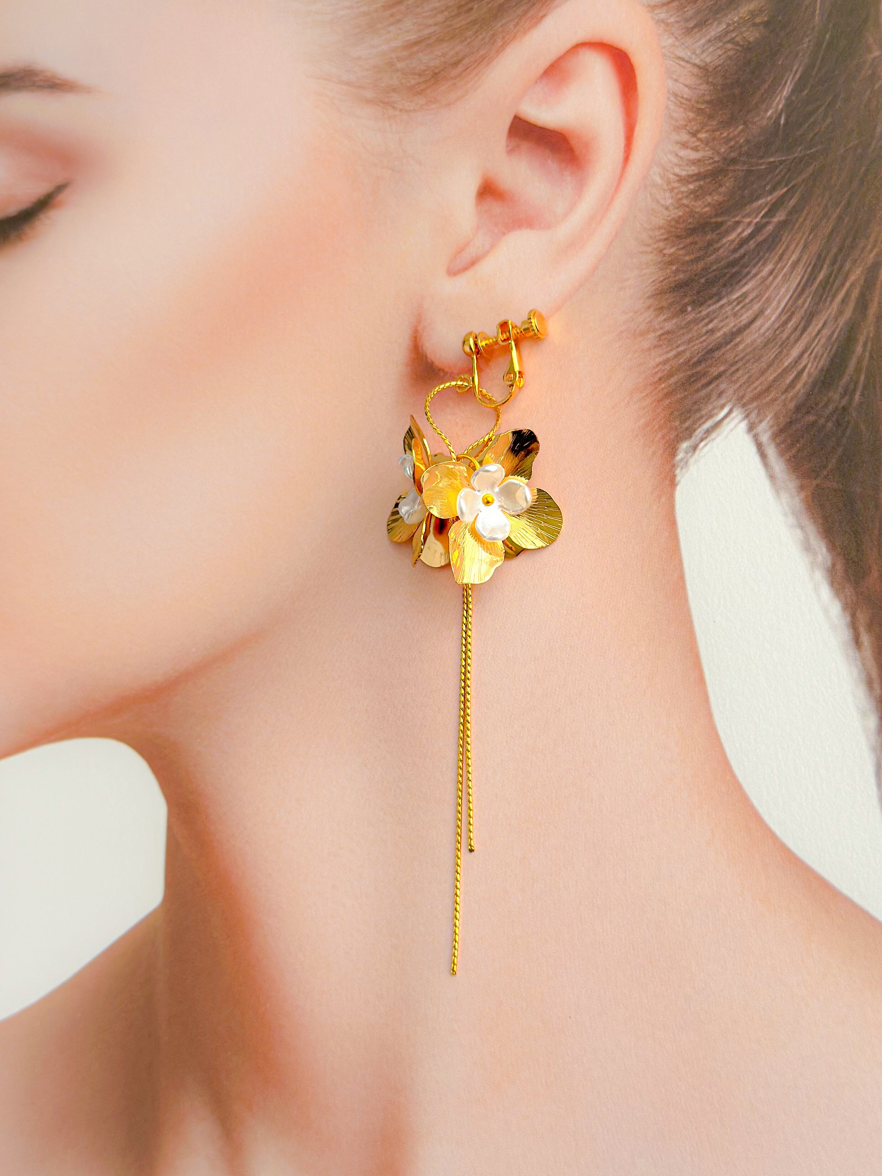 ☆ フラワーとチェーンが煌めくピアス/イヤリング