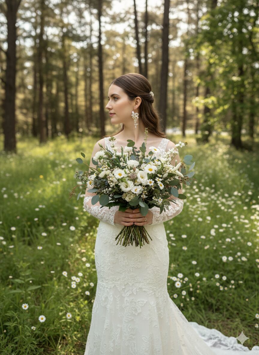 クリア×ホワイトの小ぶりなフラワーとパールがゆらゆらと揺れる